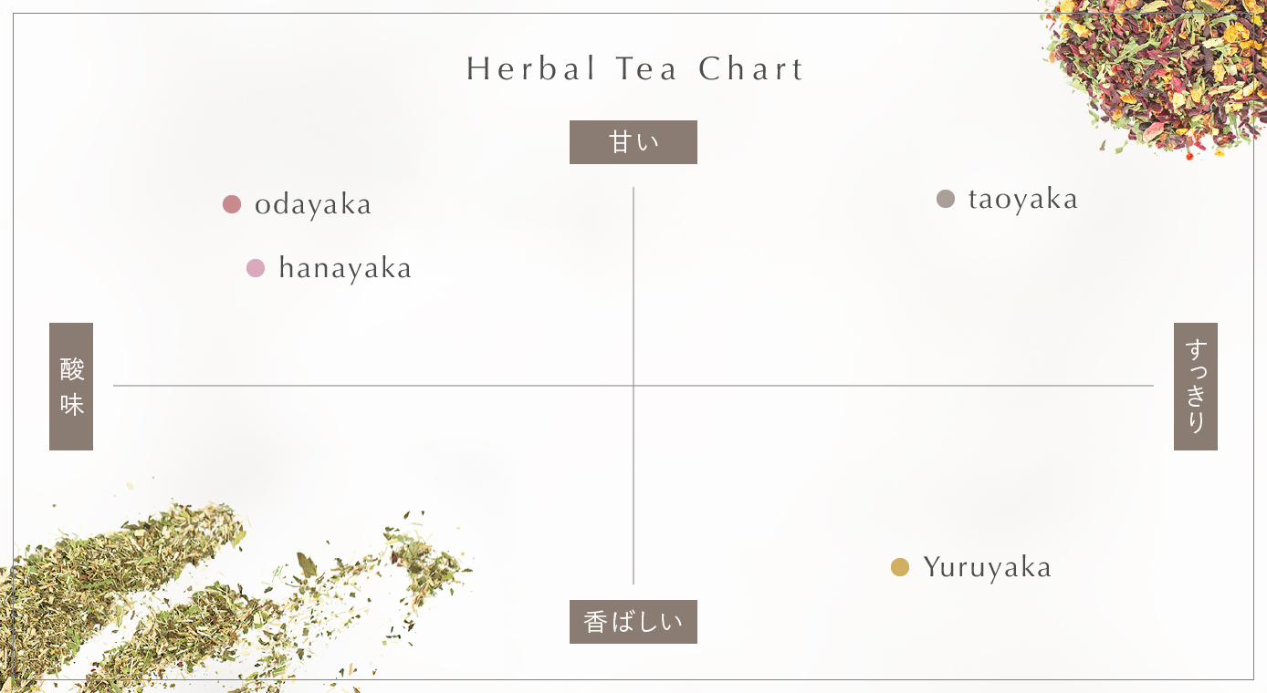 180種類を超える原材料、約50種類のフレーバーから厳選し、これまでに蓄積された多彩なレシピを用いて、ハーブティーの効果効能を生かしたブレンドを完成
